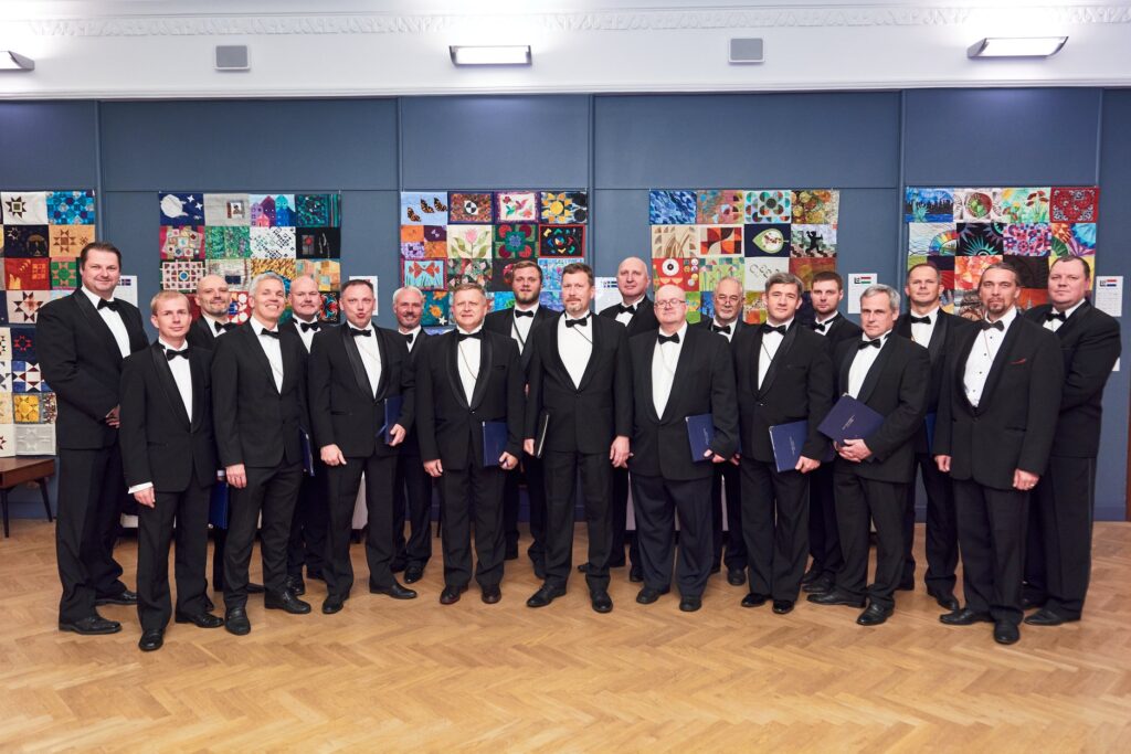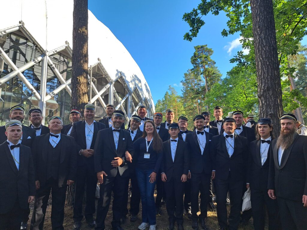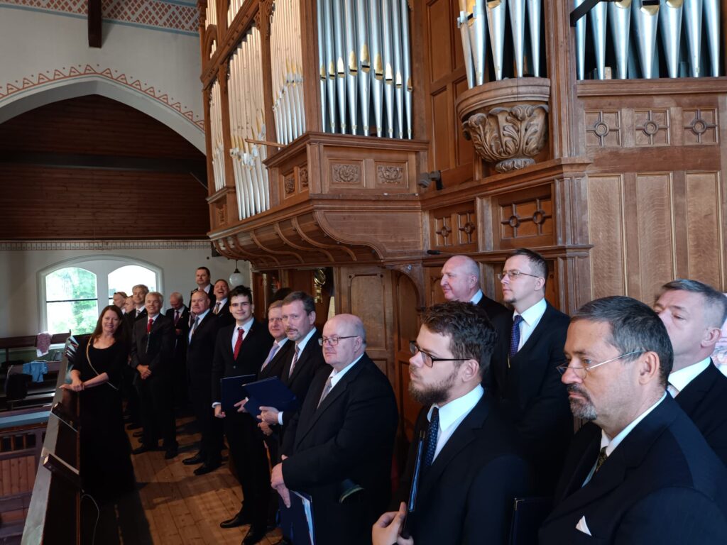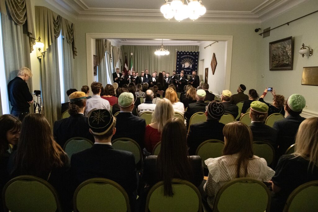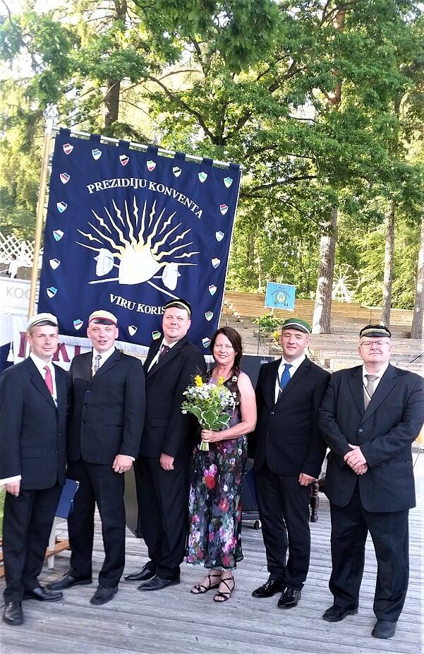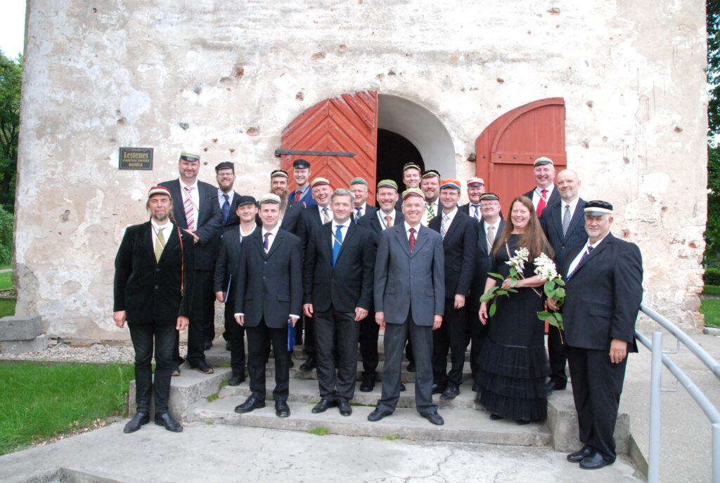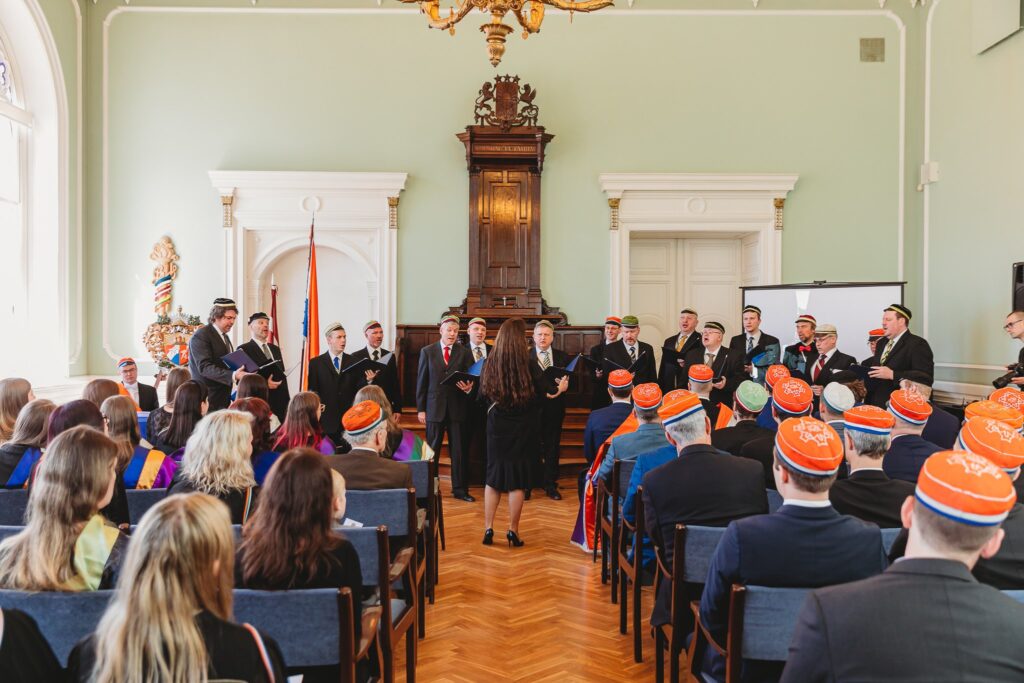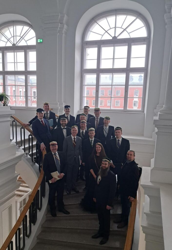 Prezidiju konventa vīru koris muzikāli sveic studentu korporāciju Tervetia 100 gadu jubilejā 24. maijā 2022. gadā